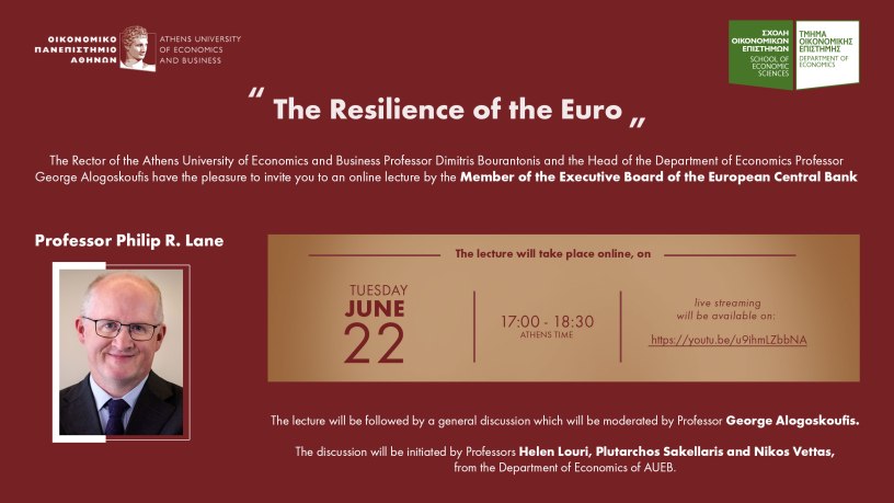 The Department of Economics of the Athens University of Economics and Business has organised an online lecture by Professor Philip R. Lane, Member of the Executive Board of the European Central Bank, on,