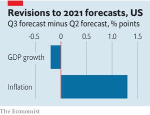 IT HAS BEEN a summer of unpleasant surprises for the world economy. America, Europe and China are growing more slowly than investors had hoped. Consumer prices are rising uncomfortably fast, especially in America. Even in the euro area, used to tepid inflation, prices in August were 3% higher than a year earlier, the highest in a decade. Economies are troubled by shortages of parts and labour, slow and expensive shipping and varying lockdown measures.