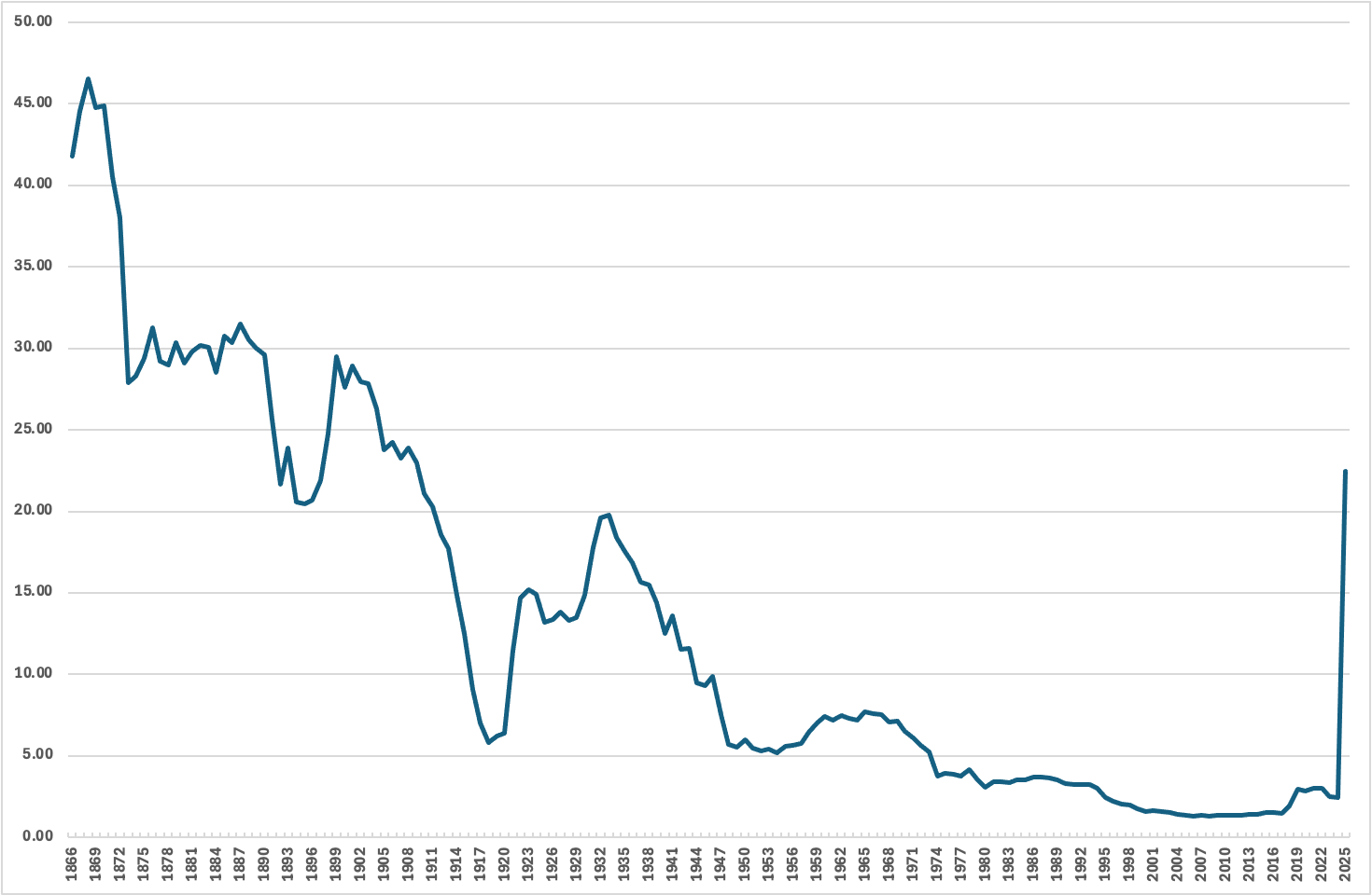 “We were at our richest from 1870 to 1913,” Trump said shortly after his inauguration. “That’s when we were a tariff country.”